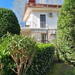 The apartment overlooks the garden and comprises a balcony and a fully equipped kitchen with air conditioning.