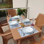 Există, de asemenea, o bucătărie complet echipată, cu toate ustensilele de bucătărie necesare. Oaspeții sunt invitați să se relaxeze pe o terasă.
